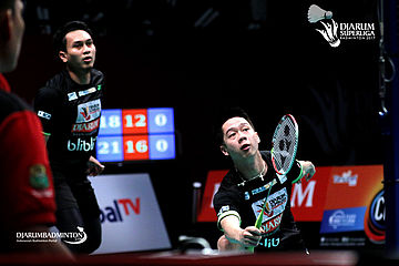 Selebrasi Mohammad Ahsan (PB Djarum).