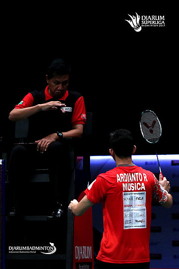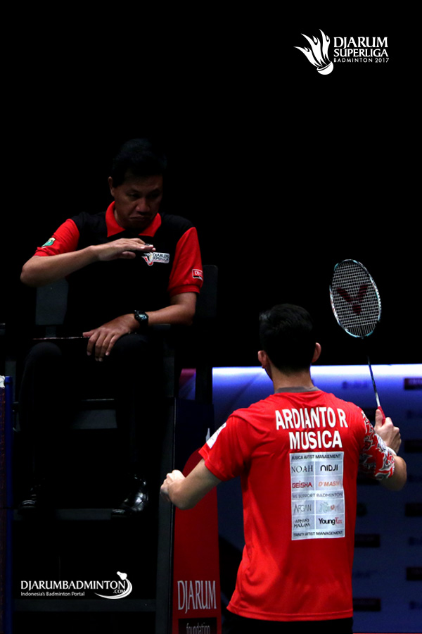 M. Rian Ardianto melakukan protes kepada Umpire.