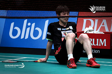 Son Wan Ho (PB Djarum) terjatuh saat berusaha menghadang serangan.