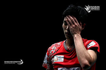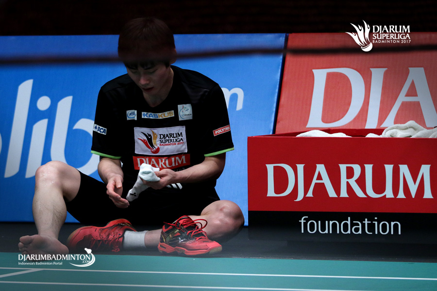 Son Wan Ho (PB Djarum) melepas sepatunya.