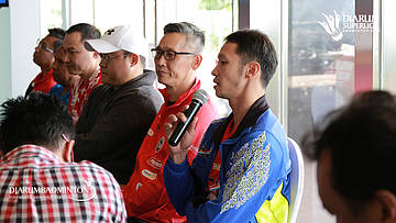 Fung Permadi (Team Manager Djarum Kudus) menjawab beberapa pertanyaan