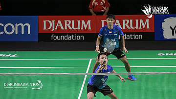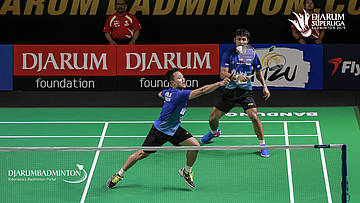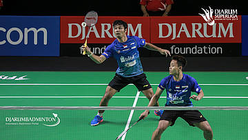 Akbar Bintang CAHYONO+Berry ANGRIAWAN (DJARUM KUDUS) menyambar pengembalian
