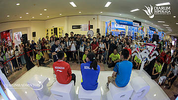 Suasana Meet and Greet Brice LEVERDEZ (BERKAT ABADI), Ihsan Maulana MUSTOFA (DJARUM KUDUS) dan Mohammad AHSAN (DJARUM KUDUS)