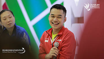 Suasana Meet and Greet Hendra SETIAWAN (JAYA RAYA JAKARTA), ZHANG Beiwen (BERKAT ABADI) dan Leo Rolly CARNANDO (DAIHATSU ASTEC)