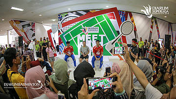 Suasana Meet and Greet Panji Ahmad MAULANA (BERKAT ABADI), Greysia POLII (JAYA RAYA JAKARTA) dan Ricky KARANDASUWARDI (BERKAT ABADI)