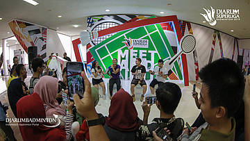 Suasana Meet and Greet Apriyani Rahayu (JAYA RAYA) dan Gregoria Mariska Tunjung (MUTIARA CARDINAL)
