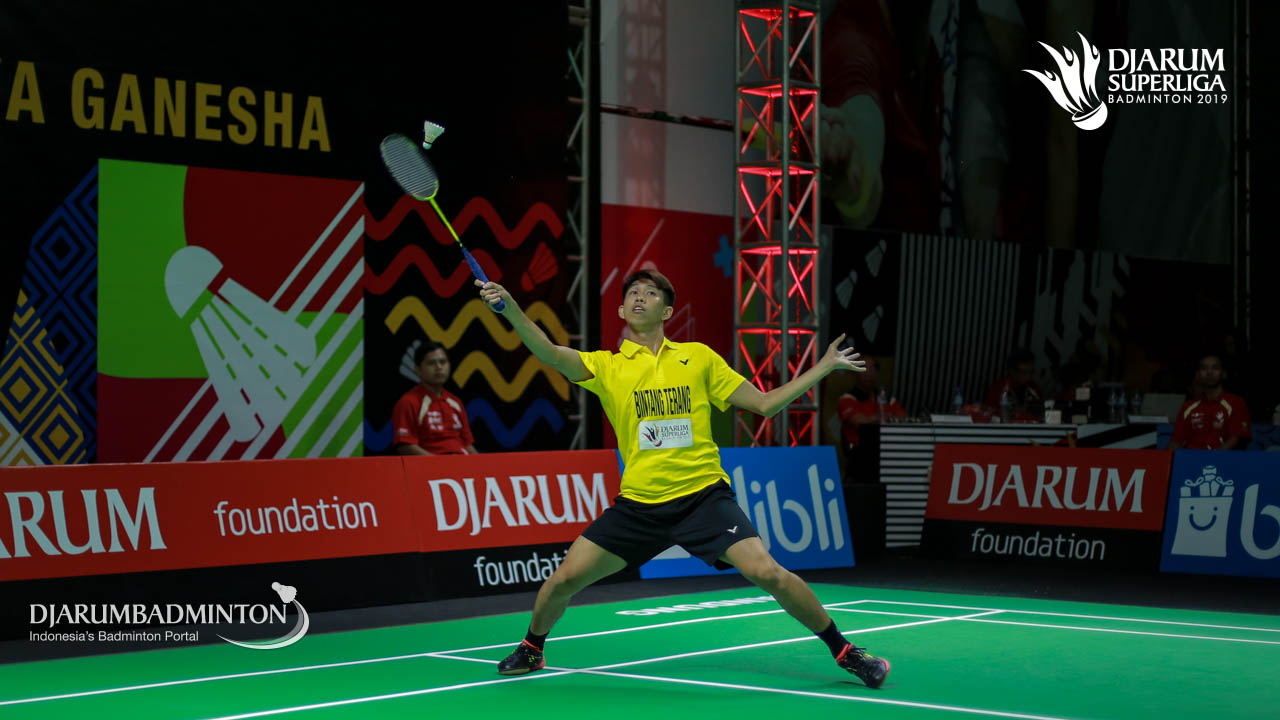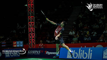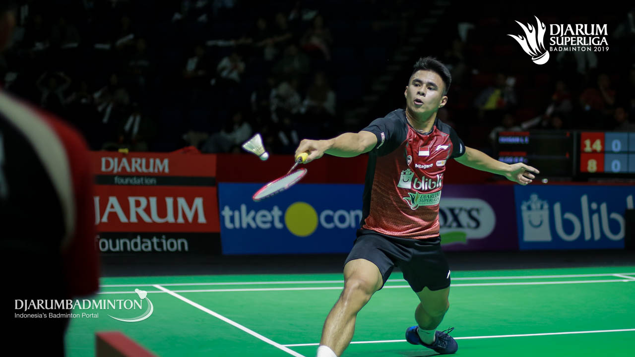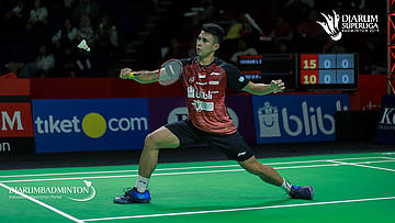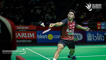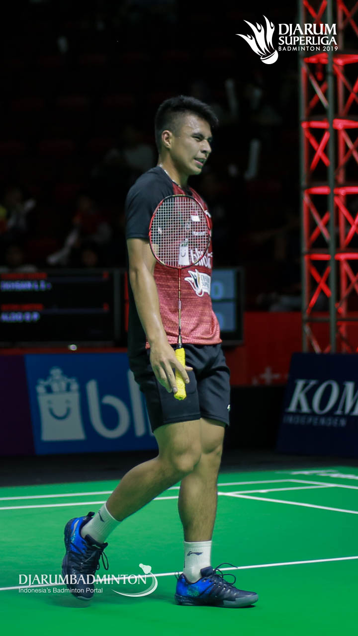 Ikhsan Leonardo Imanuel RUMBAY (DJARUM KUDUS) bersiap menyambut serangan