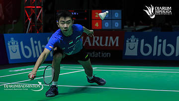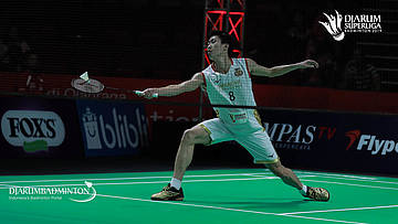 Alberto Alvin Yulianto (Djarum Kudus) menahan serangan