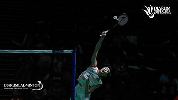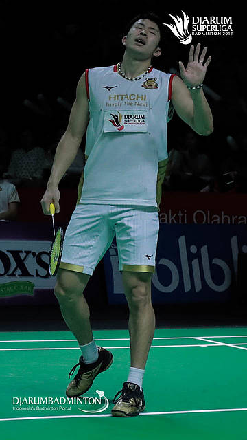 Keita Makino (Hitachi Japan) mengembalikan shuttlecock