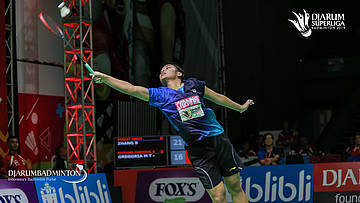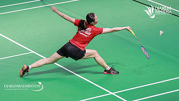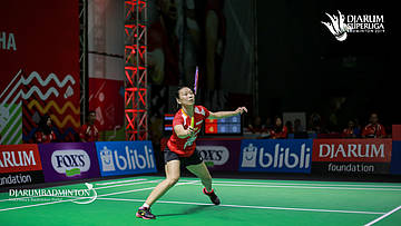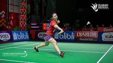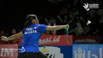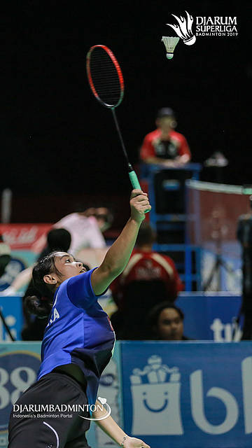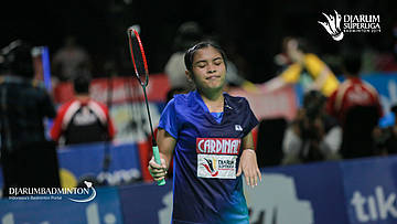 Gregoria Mariska TUNJUNG (MUTIARA CARDINAL BANDUNG) bersiap menyambar pengembalian