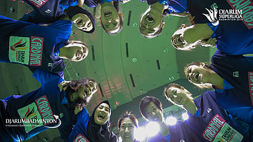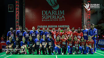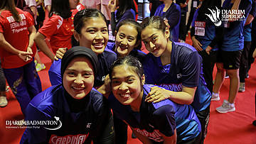 Hanna RAMADINI, Gregoria Mariska TUNJUNG, Yulfira BARKAH, Bunga FITRIANI dan Maretha Dea GIOVANI berfoto bersama sebelum pertandingan berlangsung