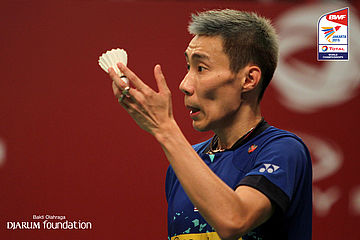 Lee Chong Wei (MAY) meminta pergantian shuttlecock