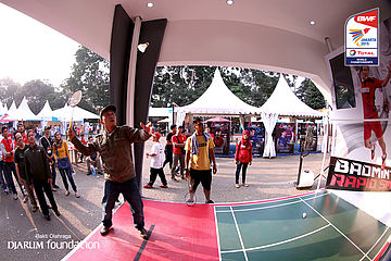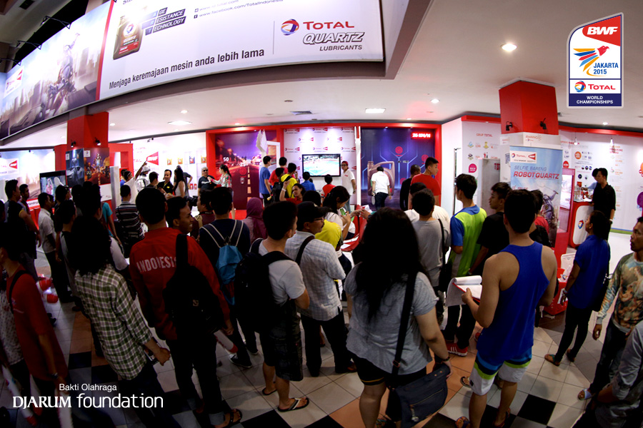 Salah seorang pengunjung sedang bermain games di booth Djarum Foundation
