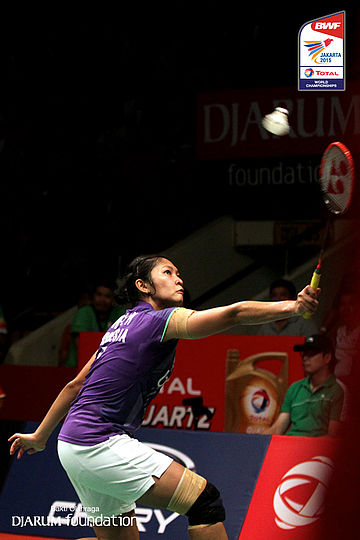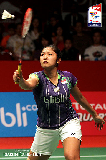 Lindaweni Fanetri (INA) menahan serangan lawan