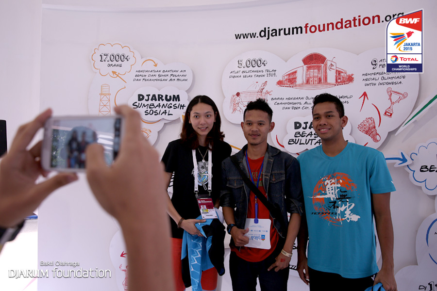 Gloria Emaluelle dan Edi Subaktiar saat memenuhi permintaan berfoto dari pengunjung